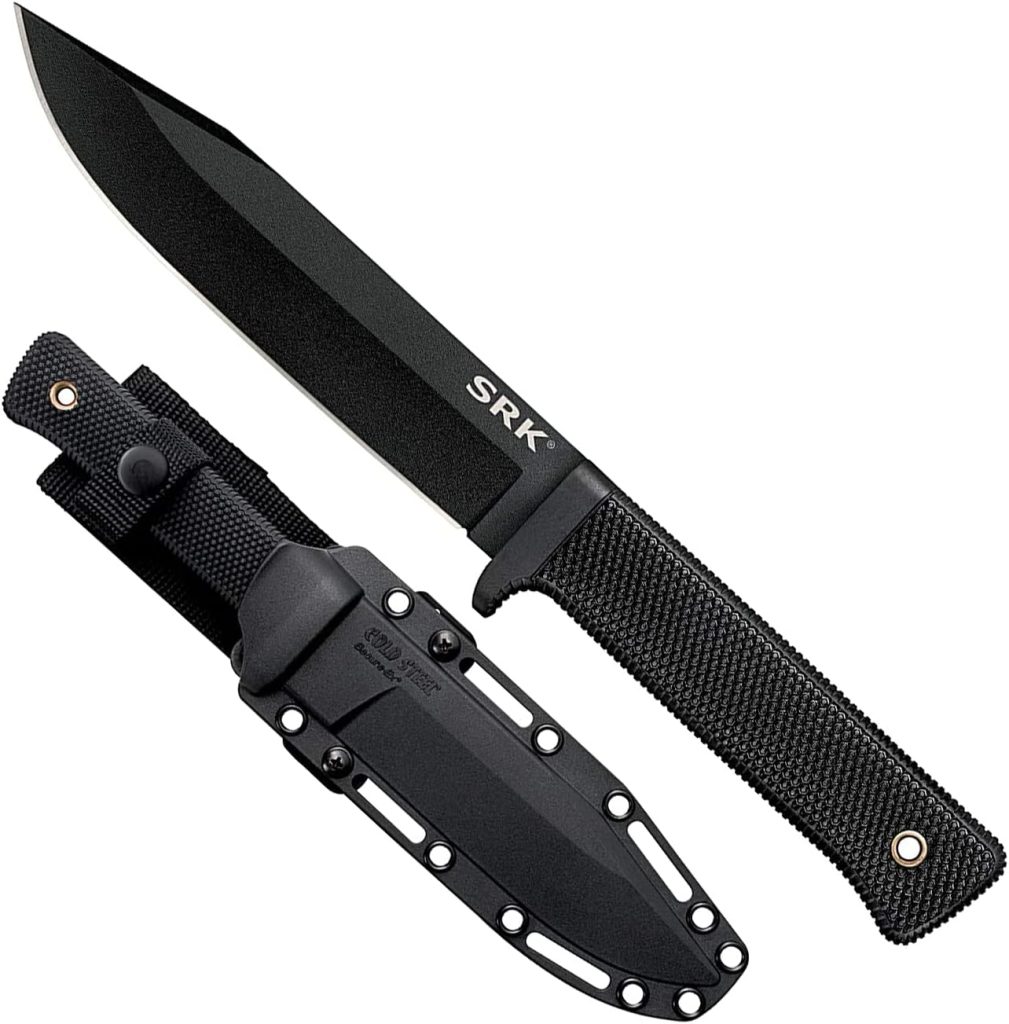 Check out the Cold Steel SRK 6 SK-5 Clip Point Razor-Sharp Blade 4.75 Durable Kray-Ex Handle Tactical Fixed Blade Knife w/Secure-Ex Sheath here.
